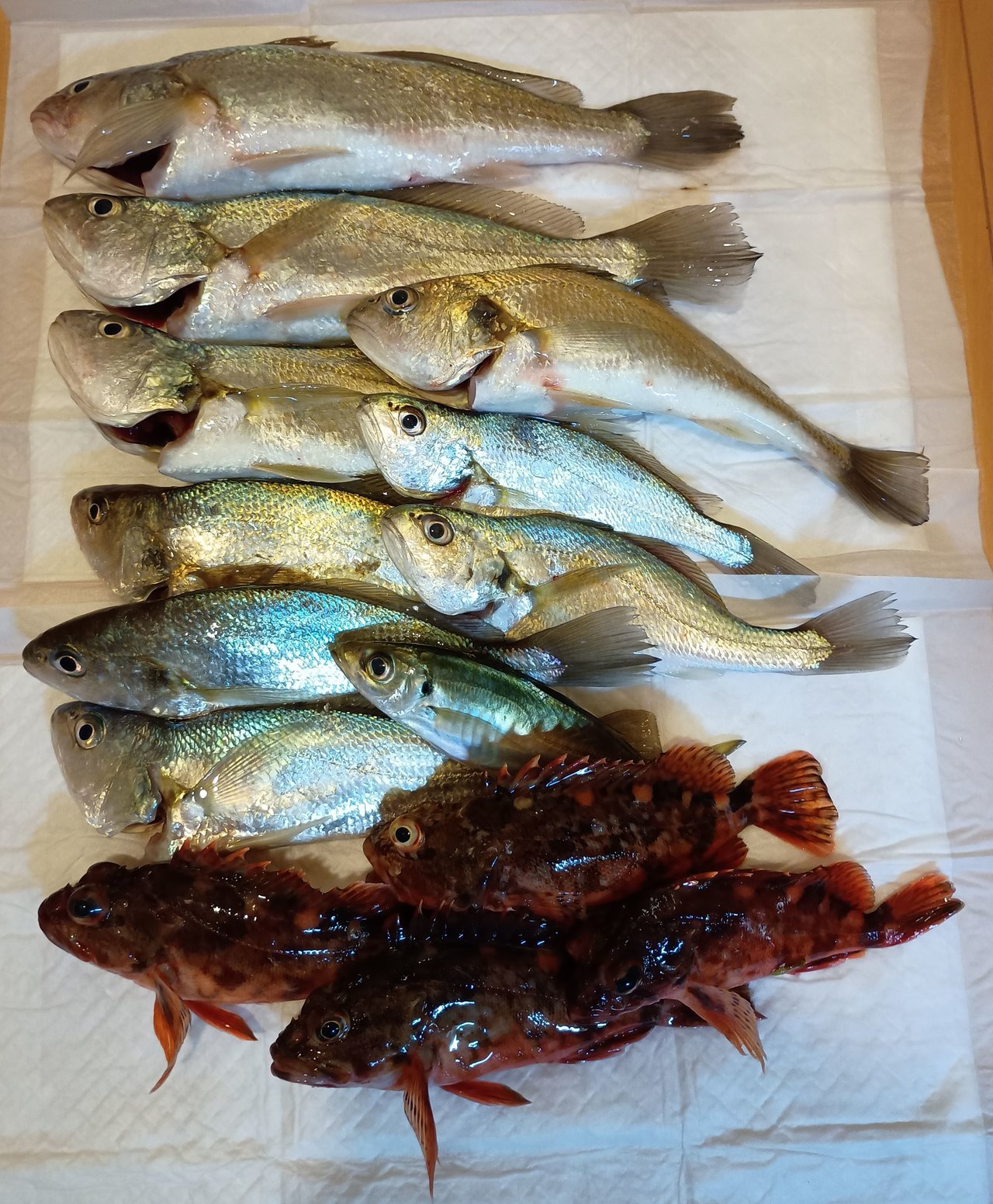 後半は大きくポイント移動しまして、カサゴなどイシモチ以外の釣果もありました。