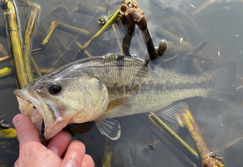 おかげで活性が上がったのかトップでキャッチ。水面一枚下でもGJだと追いきらないのでシュマリ48DFにチェンジ。すると4連発。