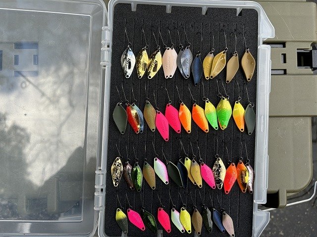 ■竿:999.9マイスター60UL、ホワイトウルフ60UL他 ■リール:プレッソ2004、旧プレッソ1003 他 ■ルアー:リクーゼ1.7g、ちびパニクラSR・MR、団子魚SR、ウッサXSMR、レイゲンMR、そことろ30S他