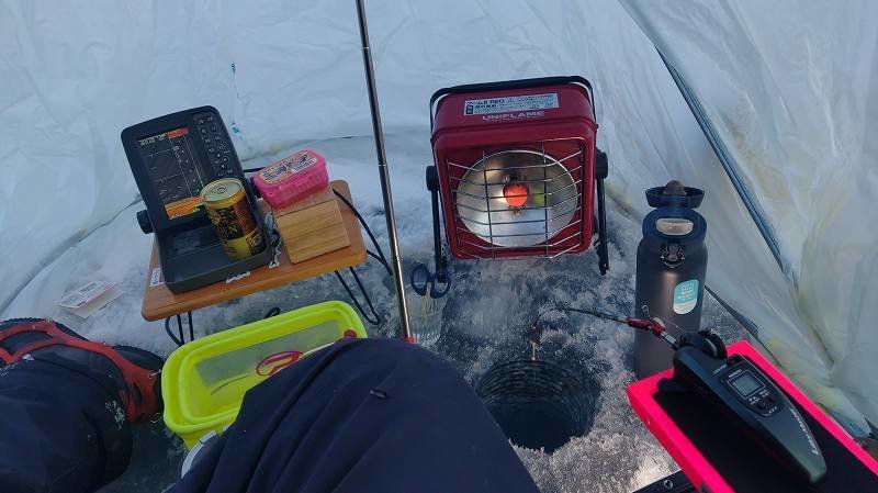 午後は底から2mの範囲でワカサギが入ってきますがそこまで高活性ではない感じでペースダウン。
