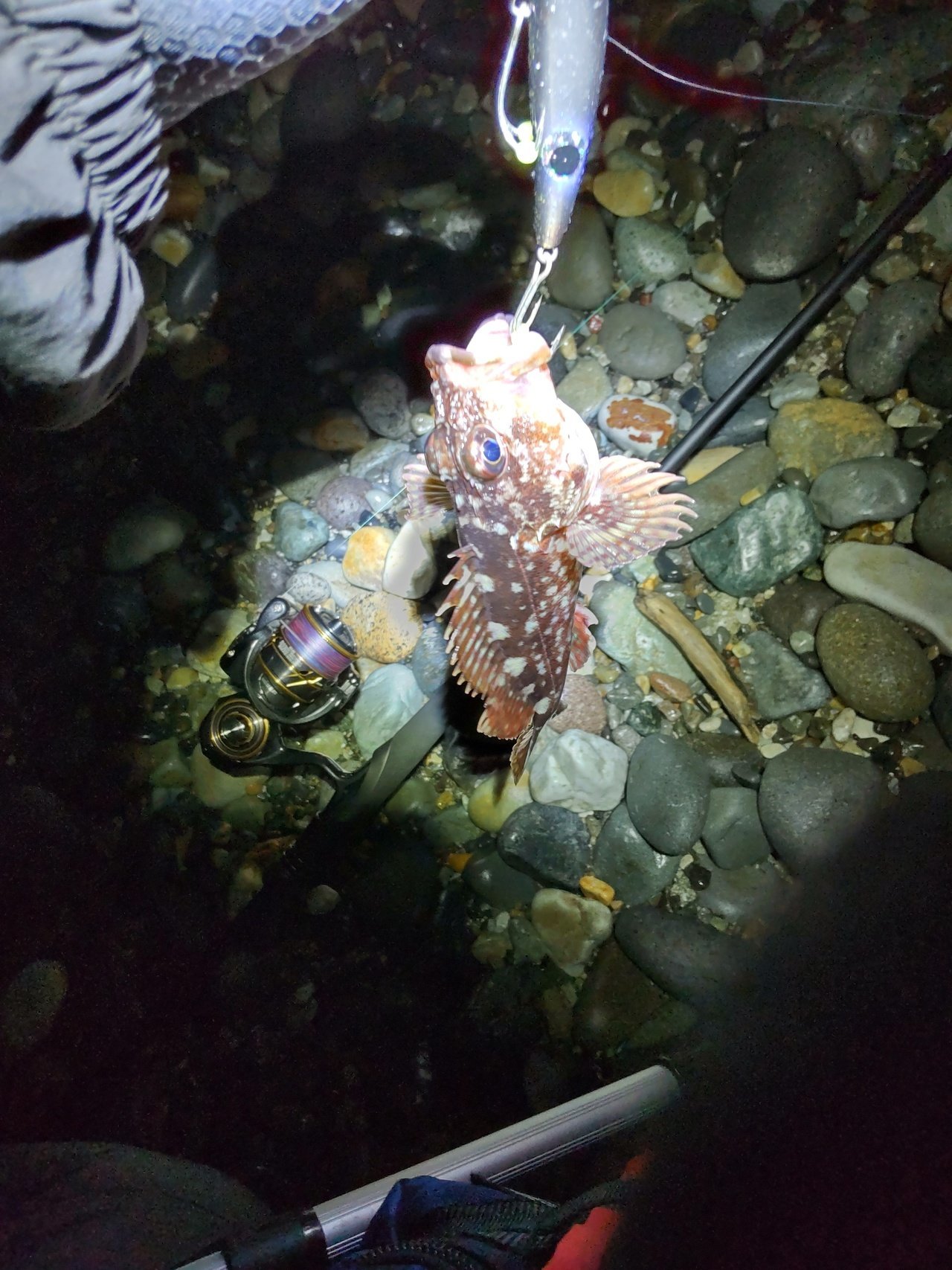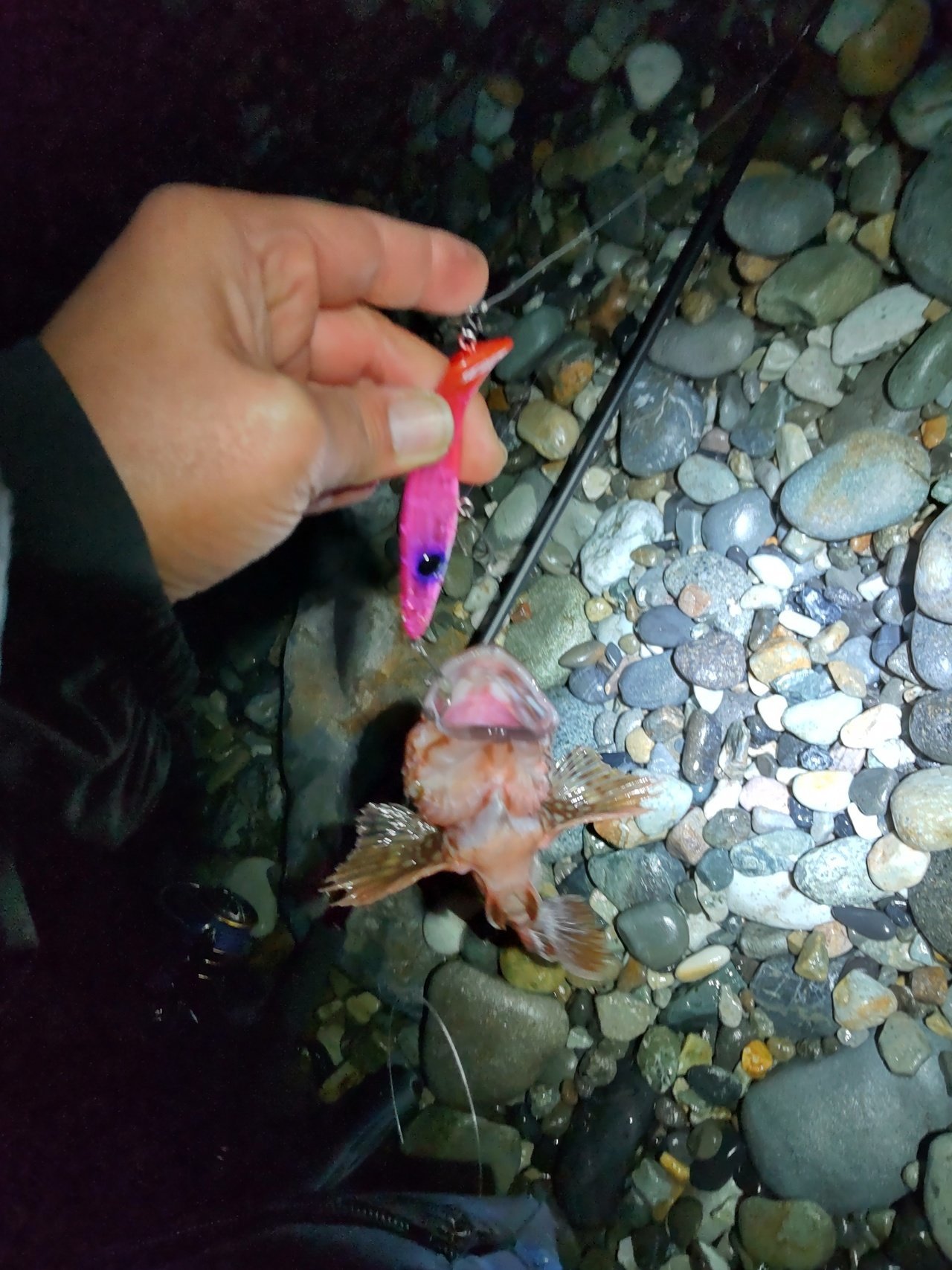 上流部へ向かいましたが全くアタリが無く、帰りはレッグワームのダウンショットに変更。