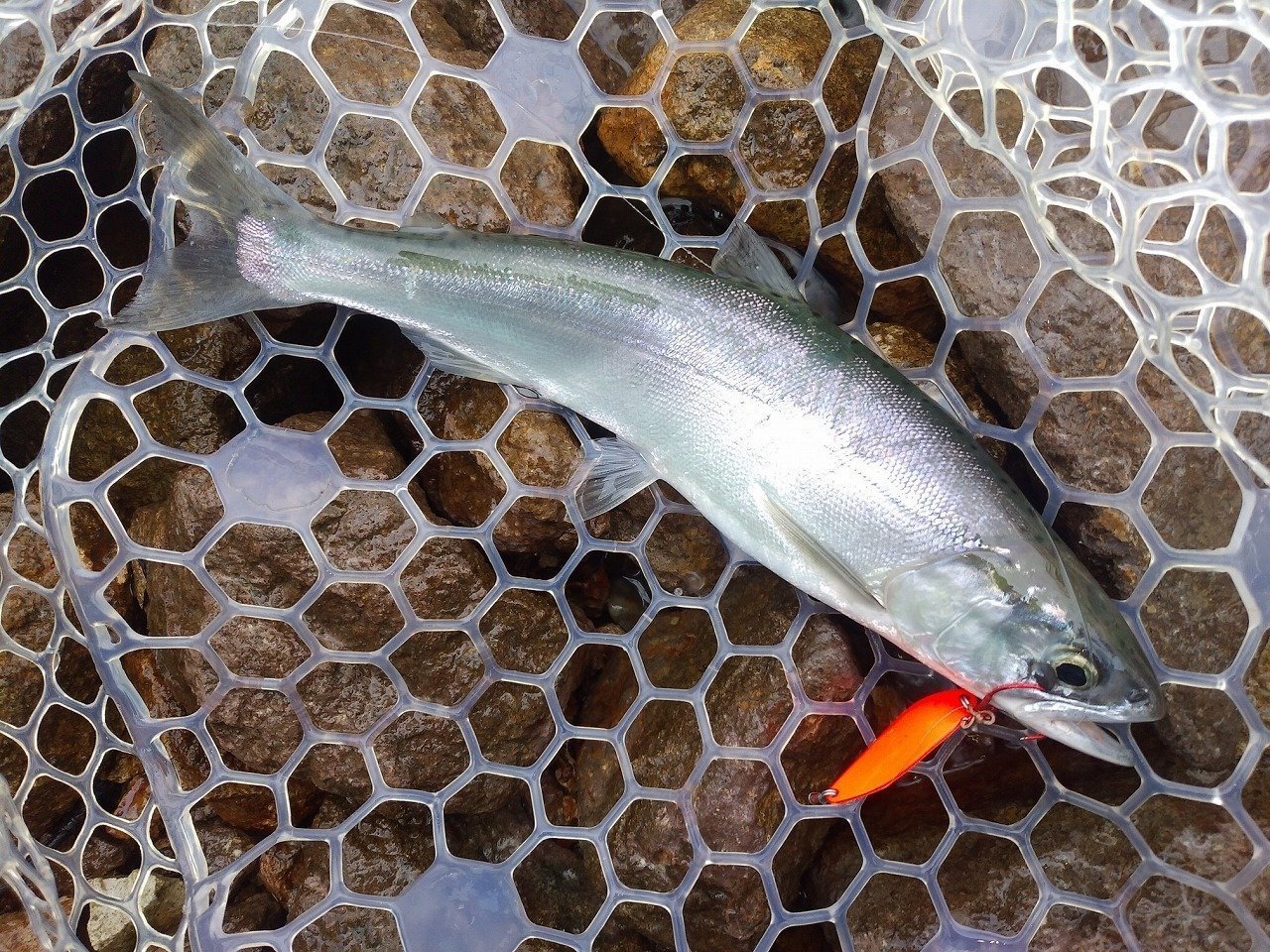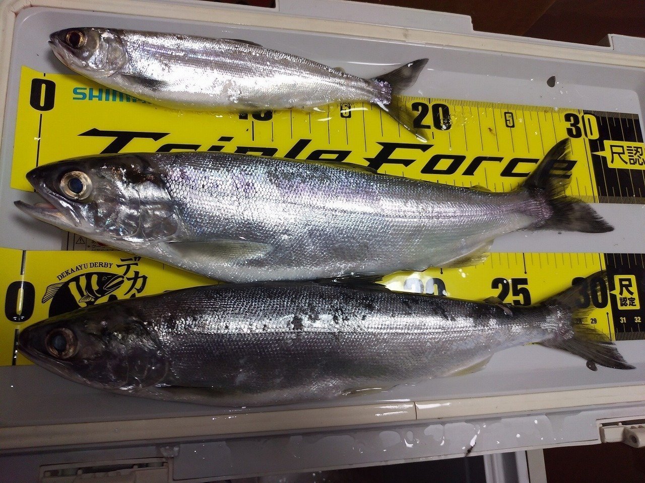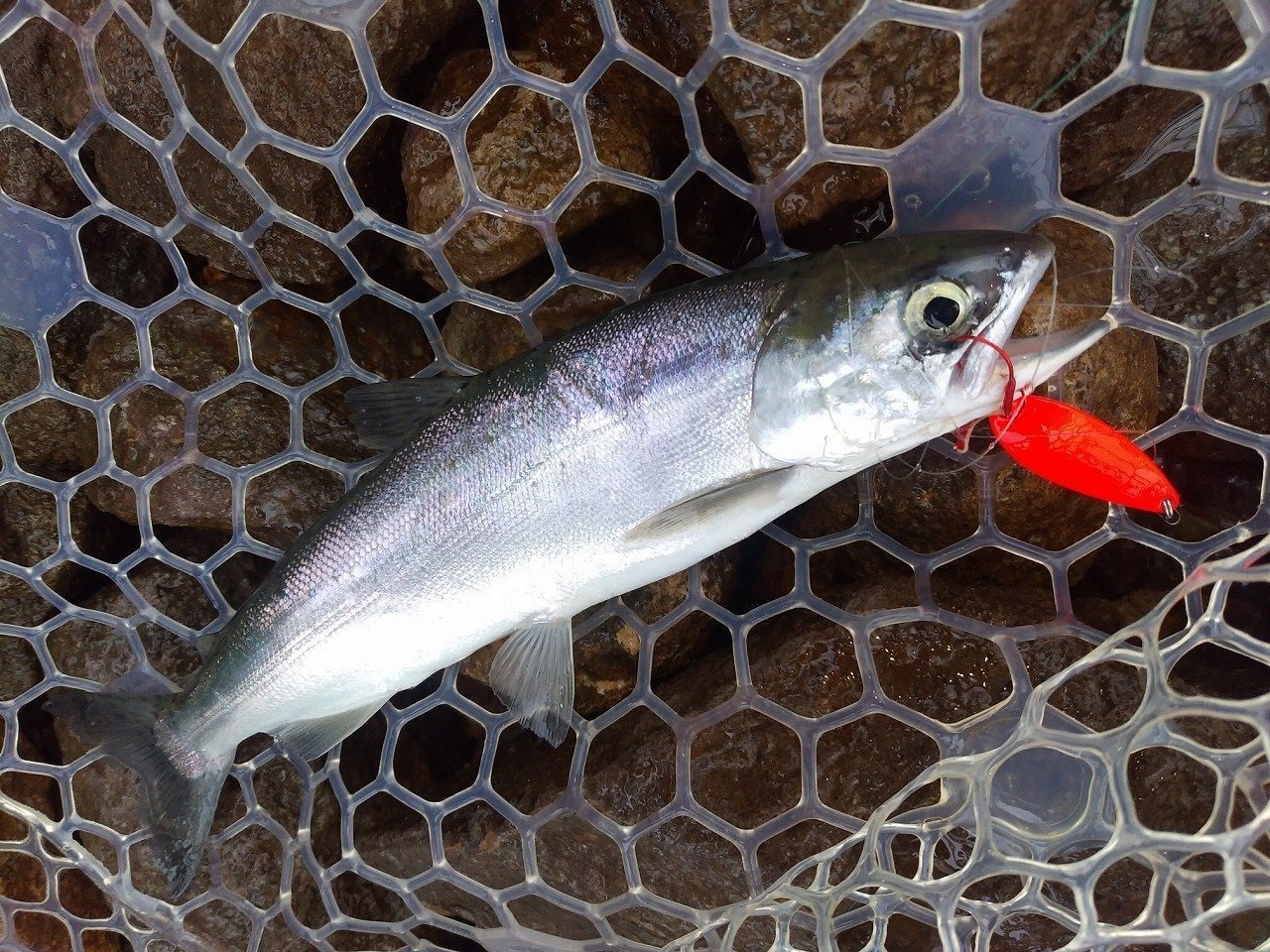 ベイトは6cmくらいの稚鮎と、4cmくらいのウルメみたいな小魚でした。