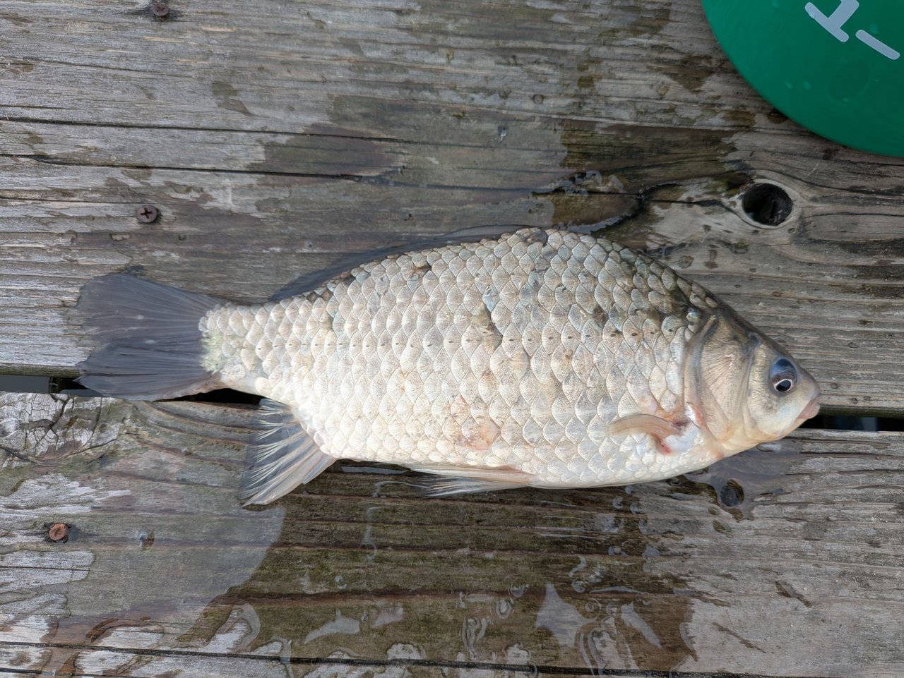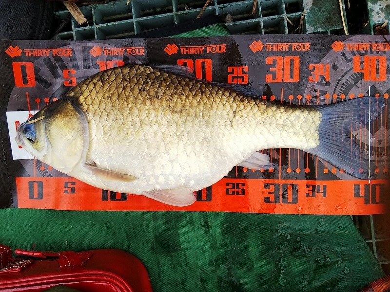 4月7日(火)また近藤沼へ乗っ込みへら釣行!現着は午前8時。当日は空いていて常連さんの話では大きなハタキは終わっていて小休止の状態との事でしたが、所々でかなり小規模ながらハタキも見られるので午前8時半から12尺両グルの底釣りでスタート。開始1時間位で弱いサワリは出ますがアタリに連動せずそのままの状態が続きます。午前11時半頃にようやくアタリに連動しますが大型は釣れず。諦めかけた午前11時45分にゆっくりとしたサワリからしっかり2節落としアワセが決まり糸鳴りと共に沖に走りますがしっかりとためていると沖で浮上ゆっくりと寄せてから2度ほど暴れられましたがなんとか無事取り込み計測すると42cm。諦めかけていただけに嬉しいアガリベラとなりました。今回も使用したスズミの別作水辺12尺パワーのある40オーバーでもしっかりためられて大型を取り込む事が出来てコスパも良くて本当お気に入りの竿となりました。まとまった雨が降ればチャンスはまだまだありそうですね。
