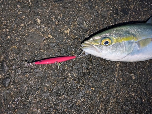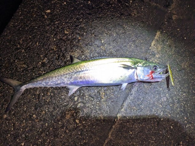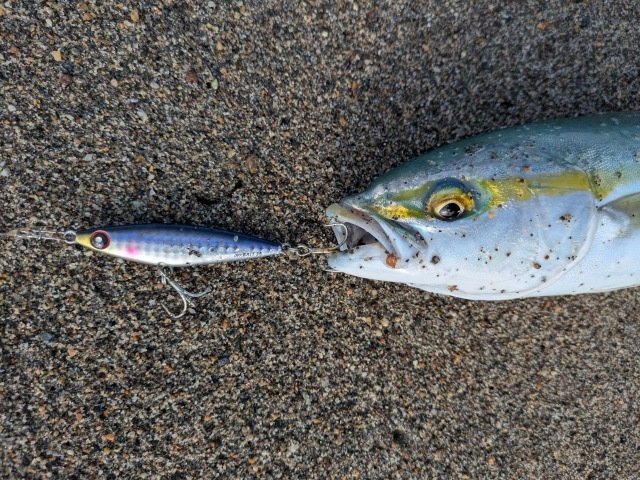 ■ロッド:9.6ftシーバスロッド ■リール:シマノC3000番 ■ライン:PE1号 リーダー16lb. ■ルアー:鉄板系バイブレーション