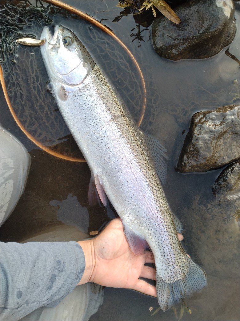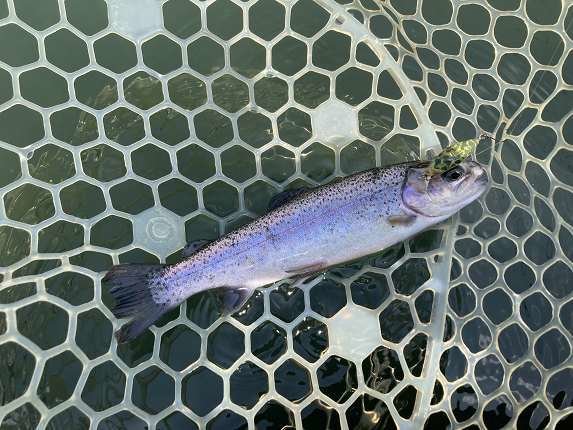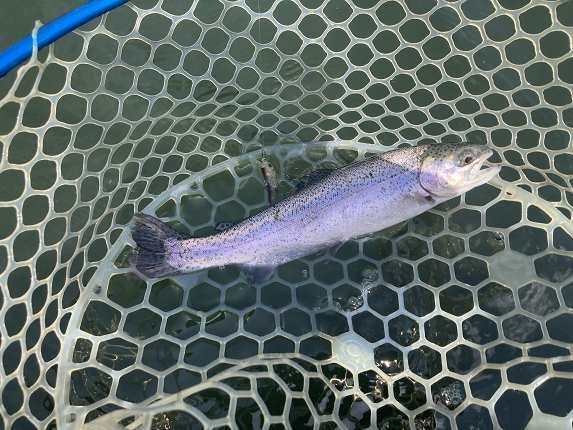 マゴチ!ランディング後ローリングでフックがネットでグチャグチャに落ち着いたところで遠目から撮影。その後気配が無くなりそろそろ終了かと思った正午手前で最下流側にいた釣り人がシーバスをGETしていましたが私の位置からはサイズ感はわかりませんでしたが、知人はまあまあサイズじゃないかとの事でその後潮止まりから1時間半経った辺りで気配が無くなり終了。天気も穏やかで雰囲気を楽しんでリフレッシュしてきました。釣友によると例年だと5月に入ってからが本番とのことでしたがそこそこのマゴチが釣れたのでチャンスは全然あると感じました。また、釣行したいと思います。