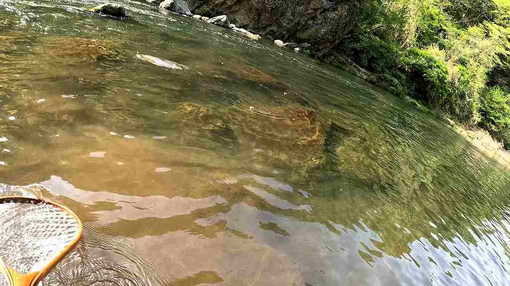 ようやくアマゴの釣果が聞かれるようななった郡上漁協管内へ、仲良くさせて頂いているお客様、T名人とエサ釣りに行ってきました。サクラも終わりそうな上流部に到着してみると日曜日という事も有り、前日の物と思われる足跡がいっぱいです。本流の広い流れなので、多少は拾えそうですが難しいか。やはり簡単には釣れず数匹で移動。4カ所ほど移動して何とか5匹ずつ釣る事が出来ました。今後は一度水が出れば、またリセットされると思われます。