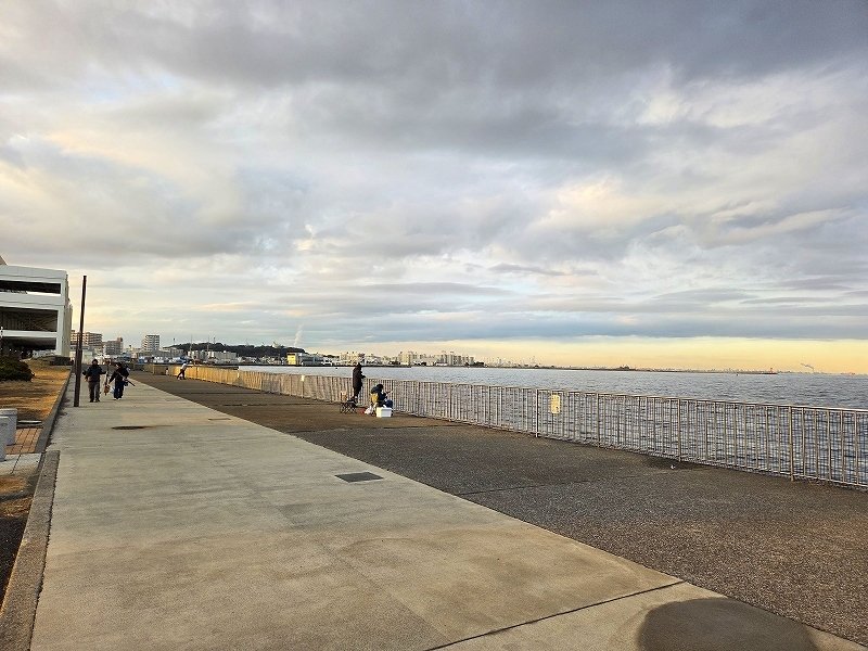 【横須賀うみかぜ公園】横岸壁最新釣果情報です。釣果を伺いながら公園の清掃に行って来ました。本日は冷え込みが厳しい中でも負けずに元気に竿を出している方が10名程伺った時間帯にいらっしゃいました。日没からのアジ狙いの方や胴突き仕掛で垂らし釣りの方が目立ちました。