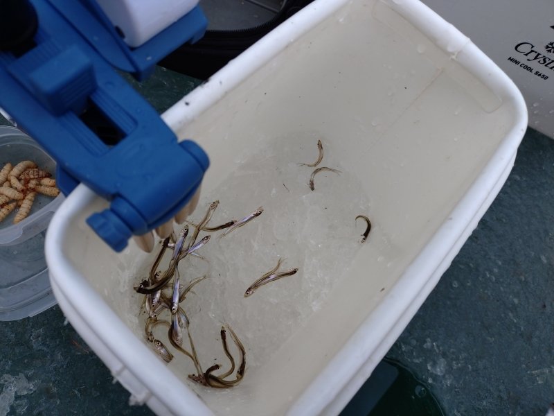 ■ロッド:上州屋オリジナルWSスタイル ■リール:ダイワクリスティアCRS-C+ ■ライン:PE0.2号 ■エサ:魔王ラビット、サシ、ブドウ虫