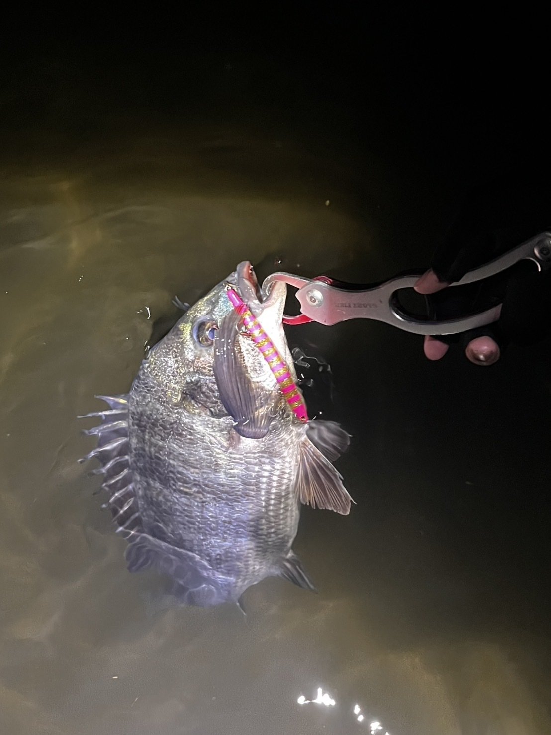 何度かのショートバイトの末、良コンディションのクロダイをキャッチ!