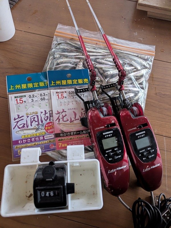 長野県小海町にある松原湖のドーム桟橋にてワカサギ釣りを満喫♪朝は光量が無いからなのか派手な魚探画像からは程遠い喰い渋り。明るくなってくるとポツポツ喰いだしたのですが、入れ食いとはいかず、竿交換、オモリ交換、仕掛け交換、エサの色交換と色々試したのですがポツポツ食い。正解は放置しておくと超極小のチビワカがアタルだったのですが、いち早くそれに気付いた大師匠は500匹オーバーw。当日は雨パワーもあって日中も群れが入るのですが試行錯誤した1日でした。ドーム桟橋は6時半から4時までの時間です。