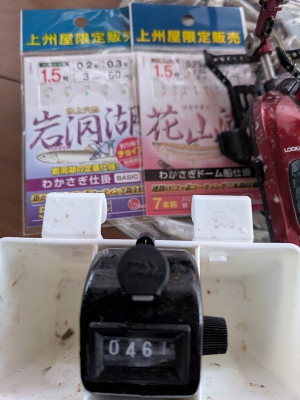 ■ルアー・仕掛け:オモリ)9g 仕掛け)袖1.5号7本針+下針 エサ)紅チーズサシ(寄せでブドウ虫)