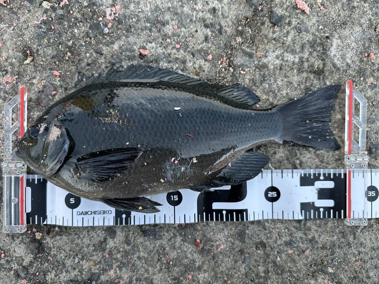 朝イチは木っ端のエサ取りが思いのほか良く苦戦しましたが、撒き餌と仕掛のタイミングや振り込む距離などを工夫して何とか39cmくらいまで釣る事が出来ました。