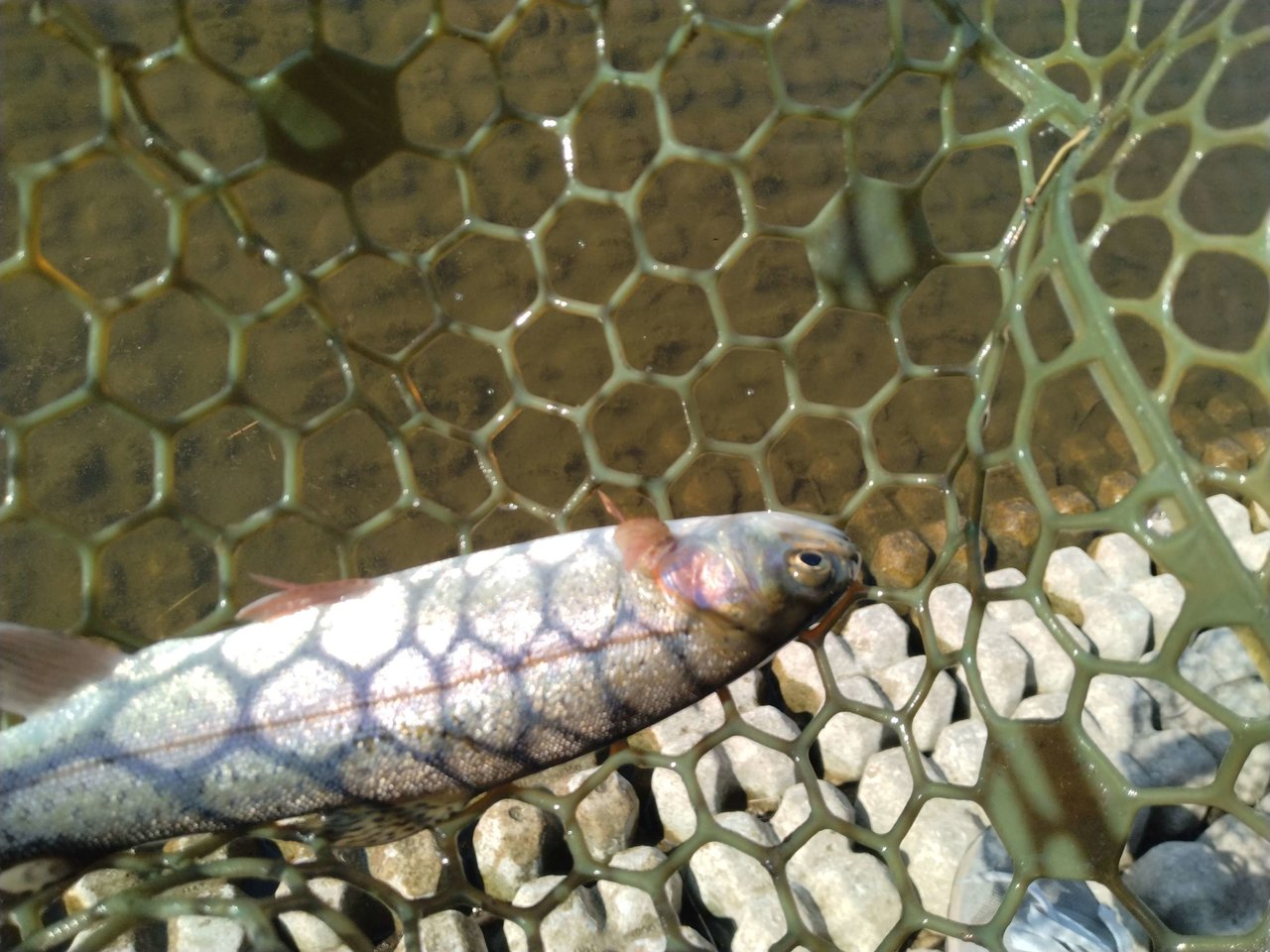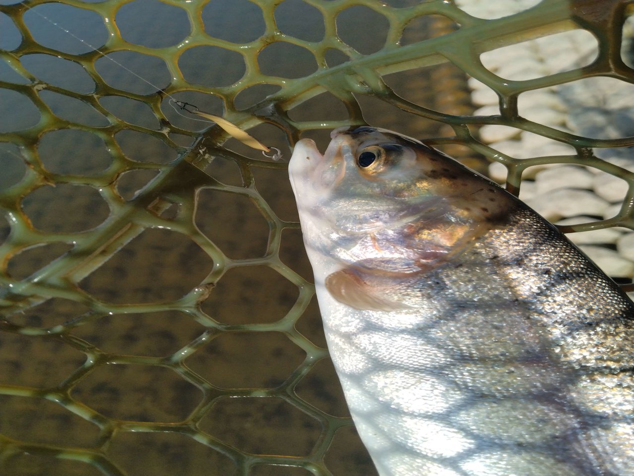 小場所をちまちま探していたら、チェイスしてきたのですが、フッキングせず、もう1度少し流す位置を変えたら喰っきたようです。