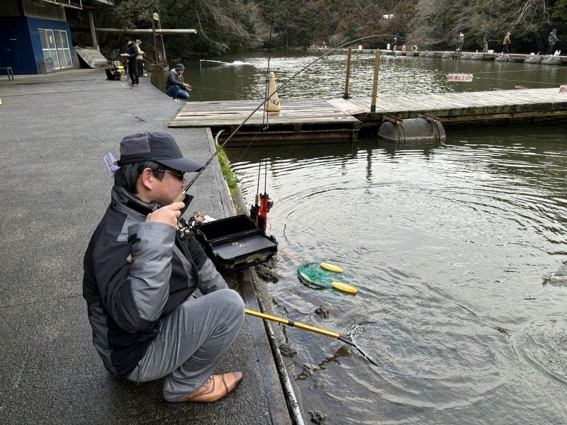 今回はアルネットホームスマイルパークしらこばと(しらこばと水上公園)です。実は釣りに来たのは多分10数年ぶりぐらい。しかも今日はお客様主催の『18mm以下、フロントフック禁止』の大会に無謀にも参加させていただきました。そりゃ~試合では何もできずに終了となりましたが、たいへん大盛り上がりの楽しい大会でした。朝イチから負け犬となった自分は空きスペースで釣りをさせてもらい何とか魚体を見ることが出来ました。アタリはそこそこ頻繁にあるのですが乗せるのに一苦労。釣れるサイズも大き目なのにアタリが超繊細過ぎ。上手な方はこれをキッチリ合わせて釣っていました。