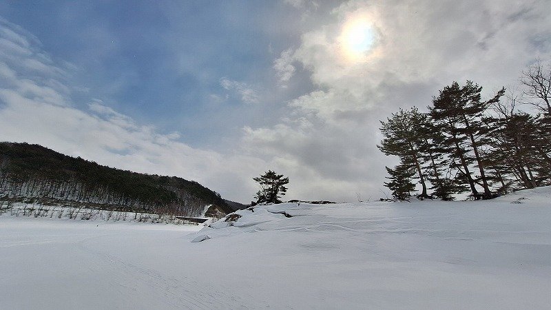 氷上が雪化粧で現状維持状態になった岩洞湖へ。6時氷上に降り最近好調なポイントへ。7時半スタートしましたが前回よりも小型が多くなりアタリがあっても鈎に掛からない悶絶ポイントに変貌。8:00に52匹→9:00に121匹→10:00に195匹→10:30に230匹で乗らないアタリがかなりあり魚探は常に映ってるので掛けれる人はまだたくさん釣れると思います。ちょっと手に負えない感じだし、行者味噌ラーメンを今季1回も食べてなかったことを思い出し10時半上がりでした!