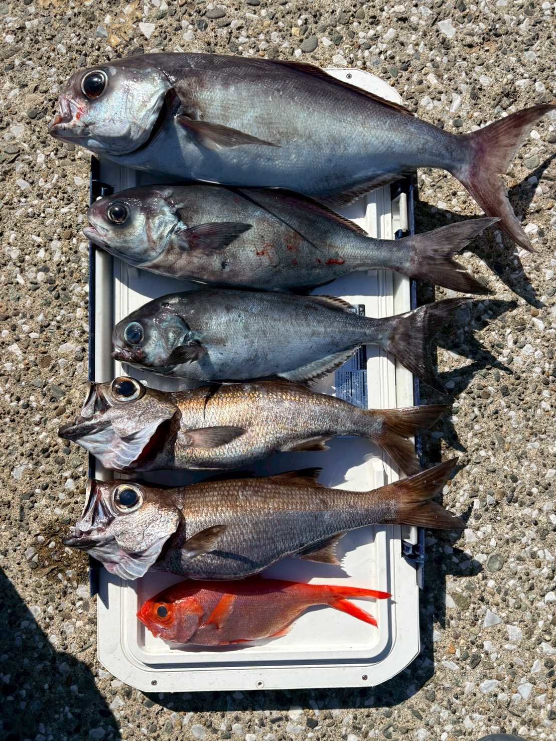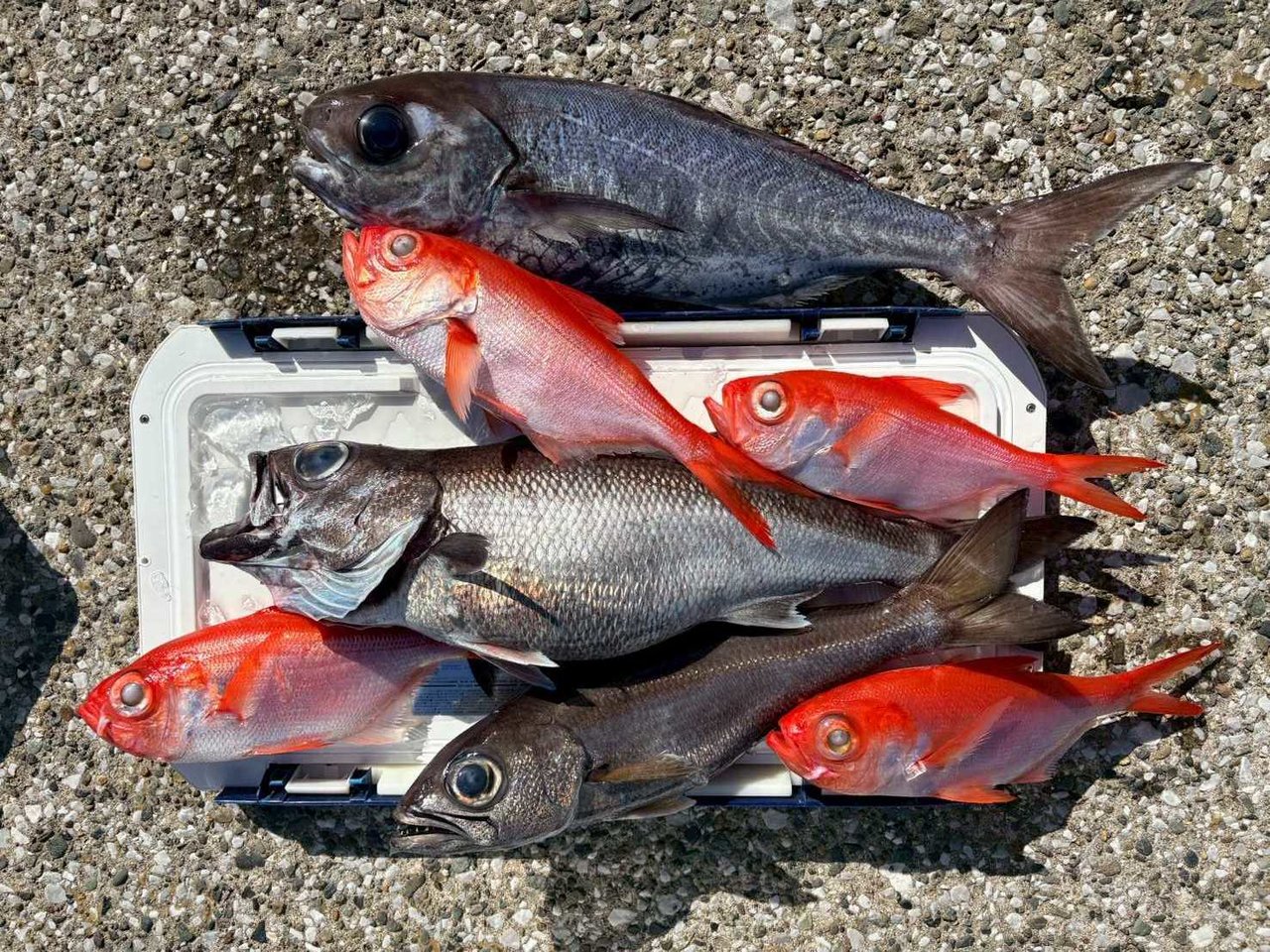 三浦諸磯港の海帆丸さんで沖の瀬の中深場五目に行ってきました。水深は360m位。オモリは300号。波と風があり、少し釣り辛かったです。しかし、一投目からみなさんにアタリが有り、良型クロムツ連発!その他にもメダイも!キンメは少々。