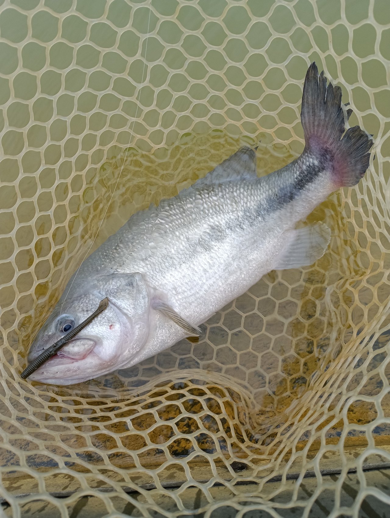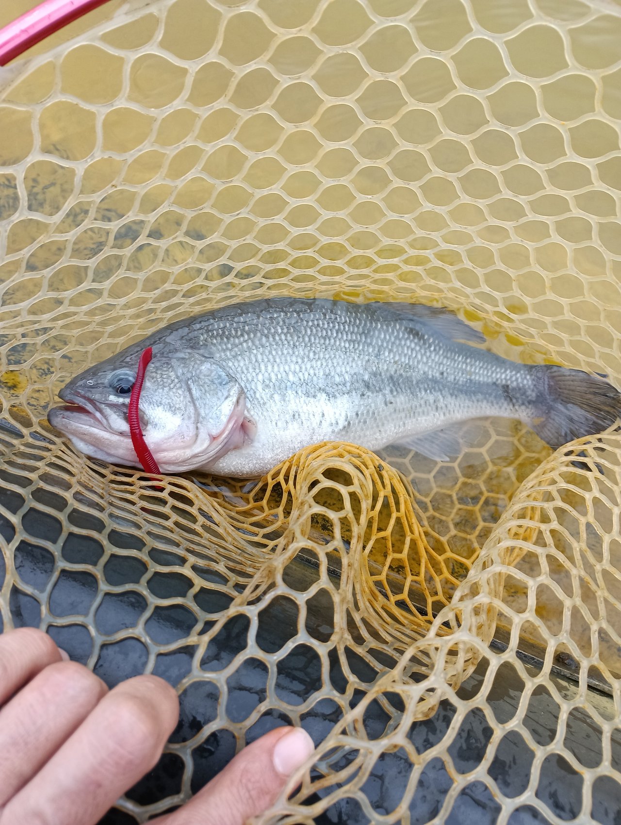 開始しばらくで雨がぱらつく残念な空模様。それでも風は穏やかで1号池は濁り薄め。足元にはバスの影が薄かったのでストラクチャーにゲーリーヤマモト「カットテール3.5inch」をダウンショットワッキーで入れると早速バスヒット!その後も水中のストラクチャーを打って行くと毎回反応がありました!雨が強まりそうだったので実釣1時間ほどで終了。それでも10匹以上のバスを釣る事ができて最高の気分転換になりました!