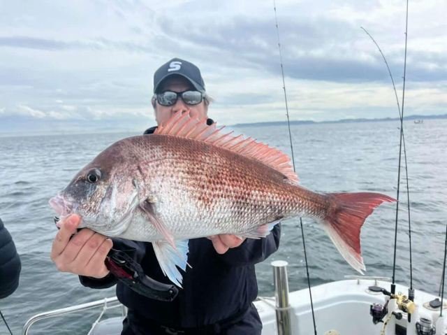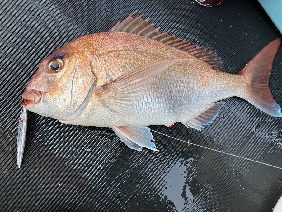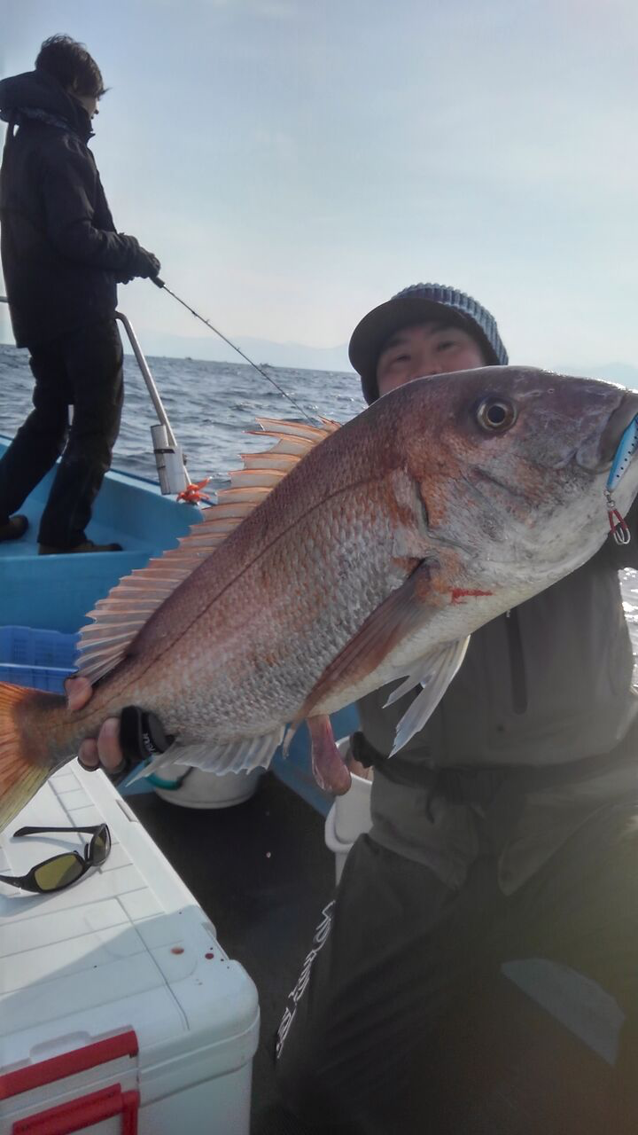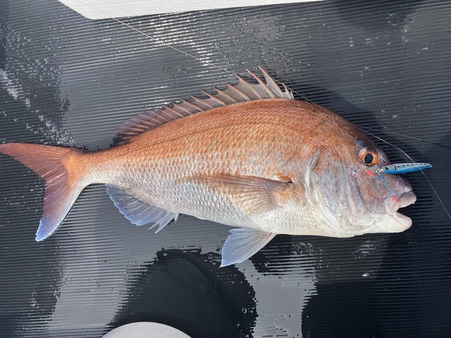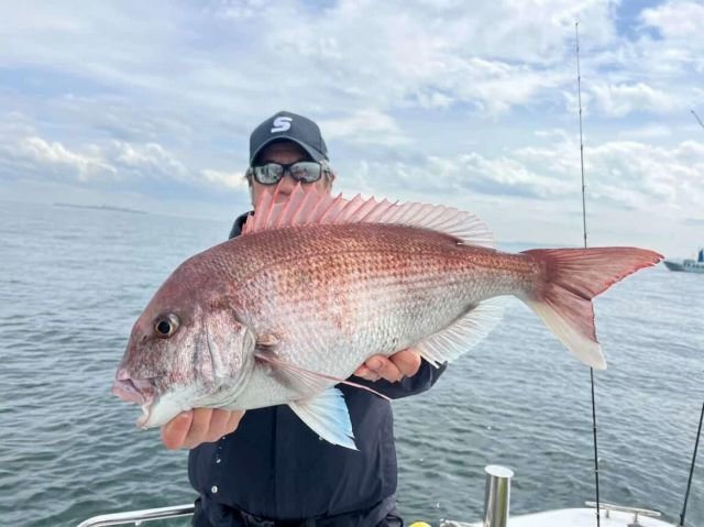 ポイント到着ご開始からアタリがあり幸先よく綺麗なマダイをキャッチ!ポイントの流し変えのたびに誰かに当たる活性の高い状況でサイズも2kgオーバーと良型ばかり。