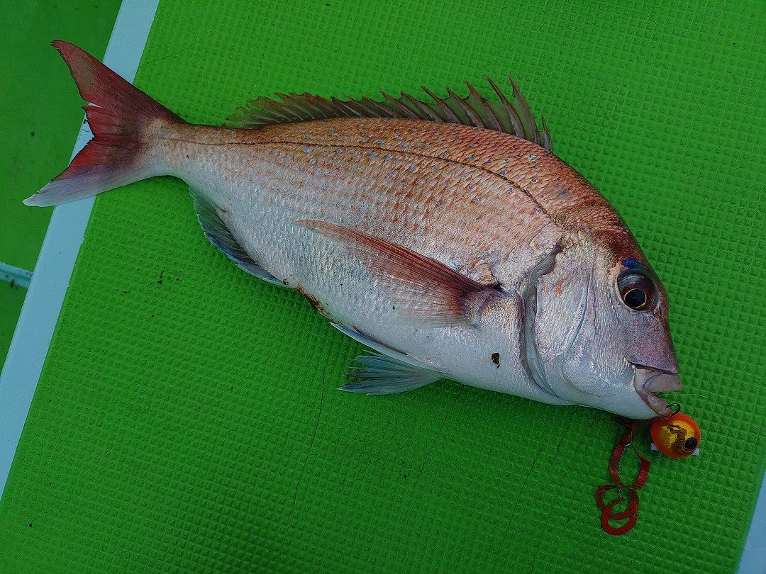 ジグを軽くし、誰もいないので斜め手前にキャストするとアタリ続出でした。