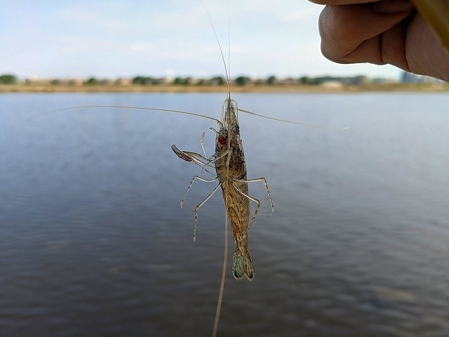 竿が曲がり、エビ独特の引きを楽しみ、久しぶりの多摩川テナガエビに出会えました💪🦐