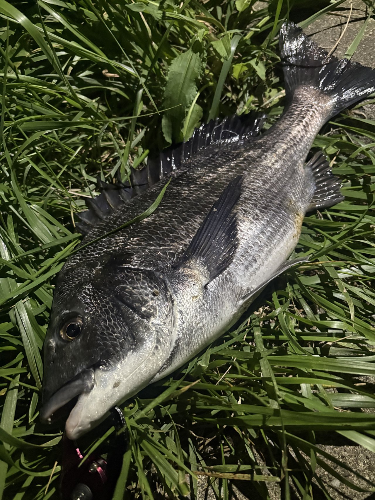今日は夜勤仕事終わりの夜ヘチ活動。満潮前を狙い2:20分に退社!原チャリで釣り場へ。今日は奮発して活イワイソメを購入。到着後、まずはイワイソメで様子見。ほどなくアタリ!…掛からず。気を取り直して続けてるとすぐに反応有り、一匹確保~!が、毎度のパターンでここから続きません。根気よく続ける事どのくらいでしょうか…やや明るんできたころようやくカニエサにアタリがでますがこれもかからずでしたが、その後すぐにもう一回アタリ、これはしっかりものにできました。夜のヘチ釣りもいいもんですよ。朝風呂→朝ビール→爆睡、最高!!