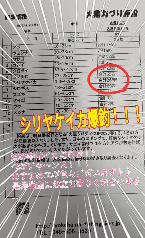 東船橋店(千葉県):2026年04月19日の釣果
