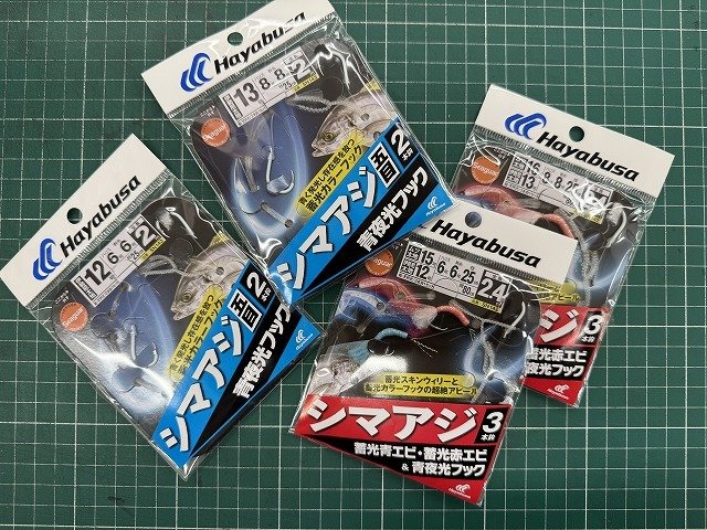 ■仕掛:ハヤブサ「シマアジ五目2本針青夜光フック(新製品)」など