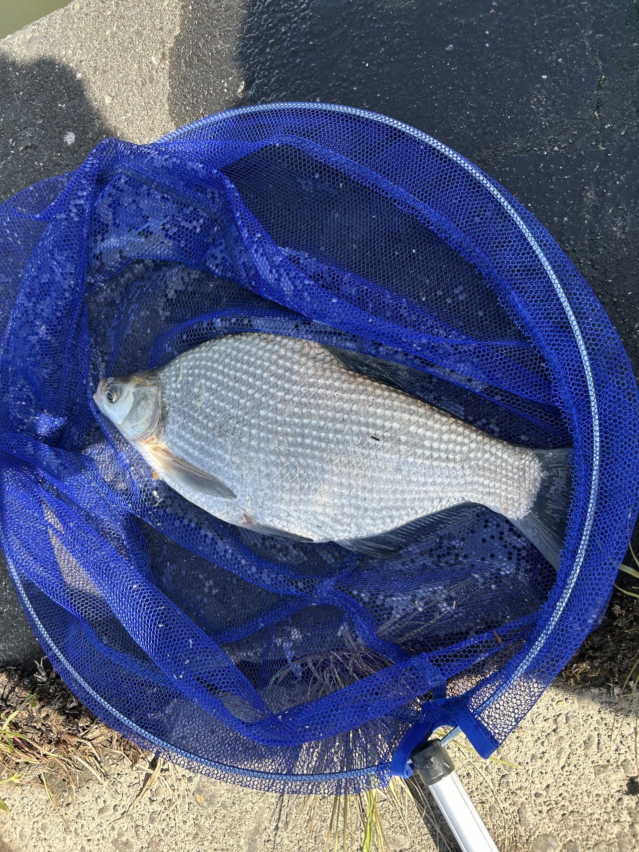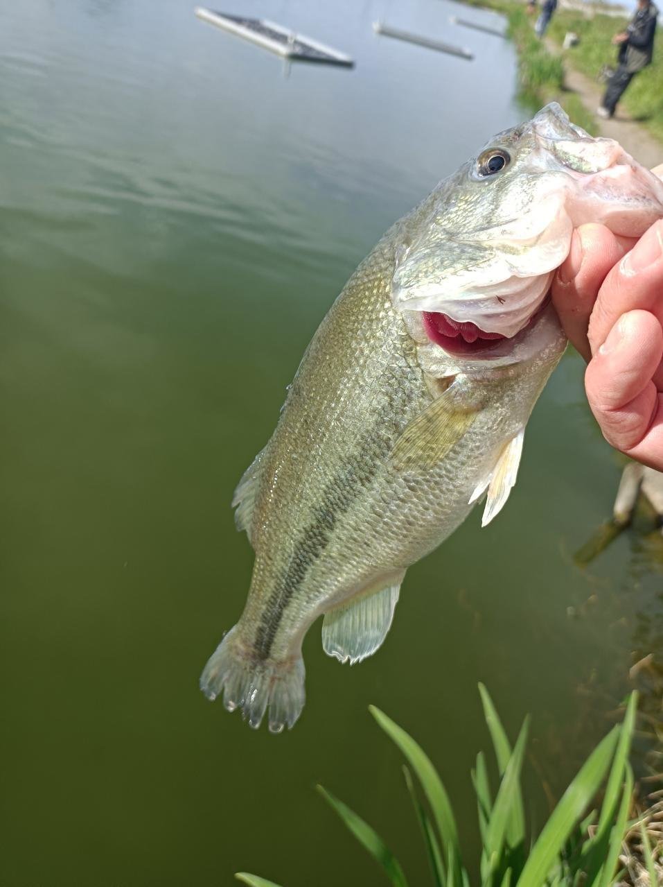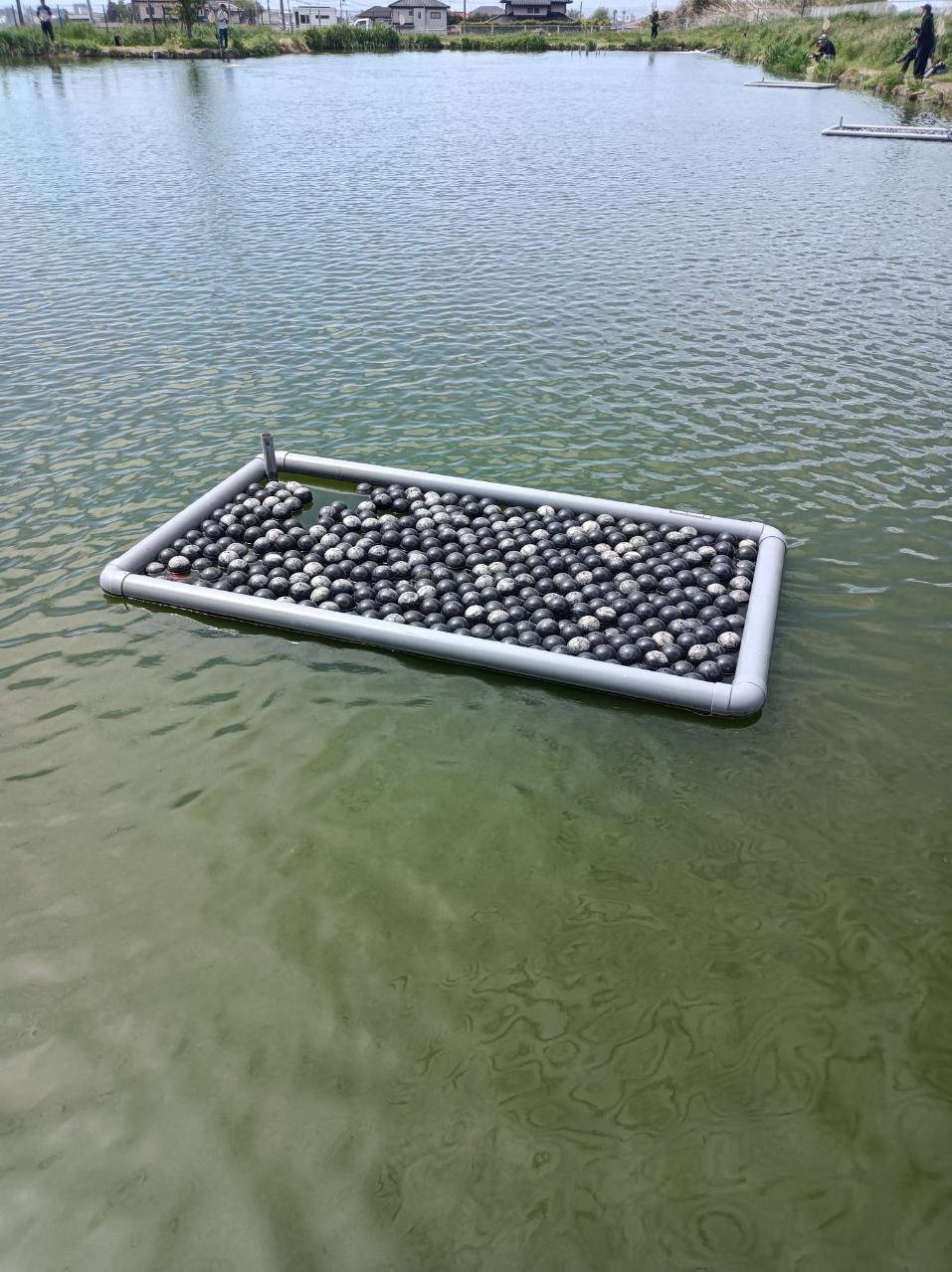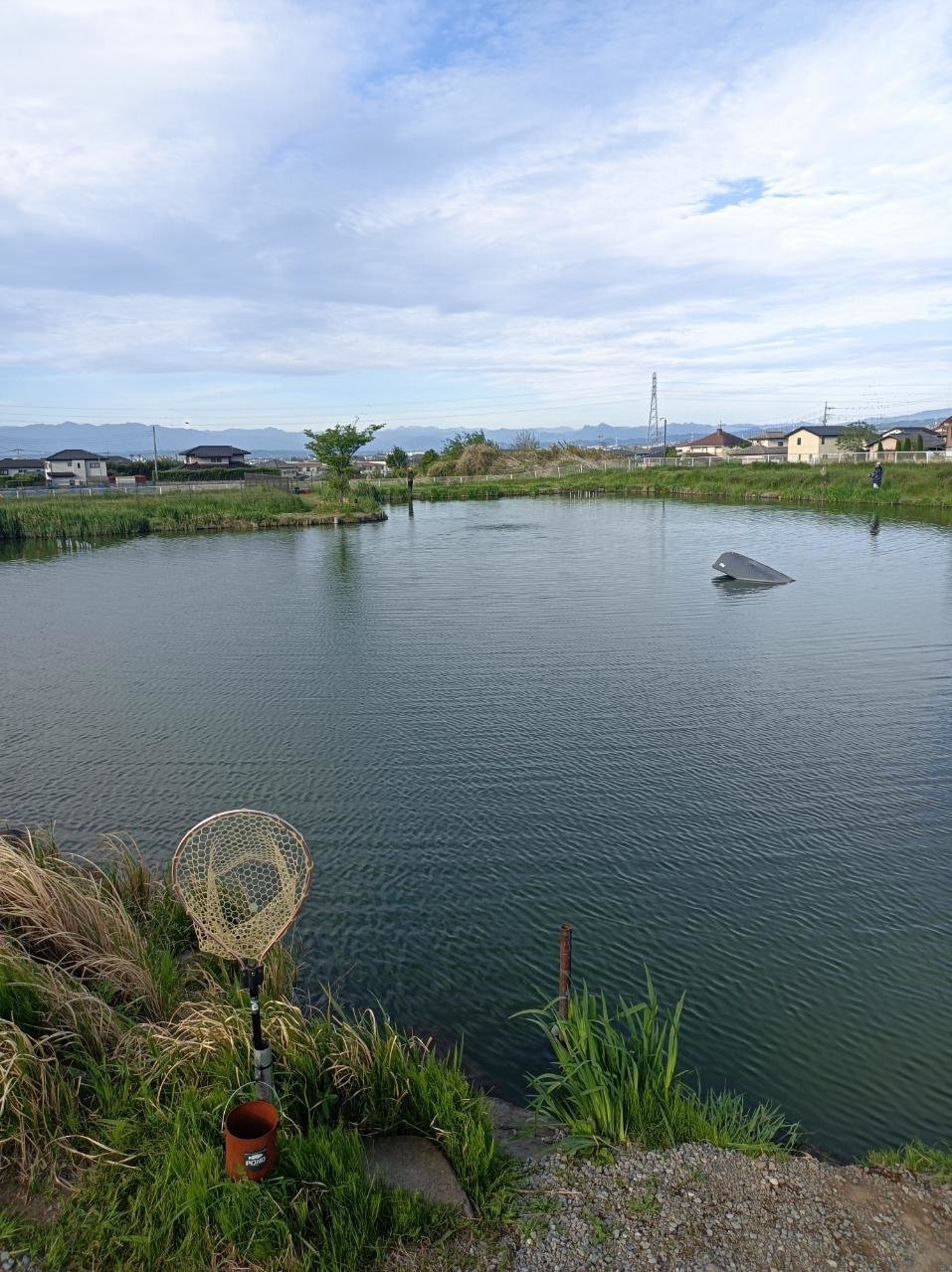 田んぼに使う為か水位はいつもより低い感じでしたが水色は良く風も穏やか、釣れそうな雰囲気。竿16尺の中通し仕掛で11時ごろから再スタート。ぽつぽつアタリが出始めたものの、お約束のアメリカナマズ。集魚剤は少なめのグルテンを使っていましたがこの日はアメナマ・コイの反応が良く、ハリス切れ・仕掛け切れ他数。ようやく1枚目が釣れたのは14時過ぎ。少しやせていましたが38cmくらいのまあまあのサイズ。その後はヘラは釣れず、アメナマ・姿の見えない巨大魚に翻弄され16時で終了。