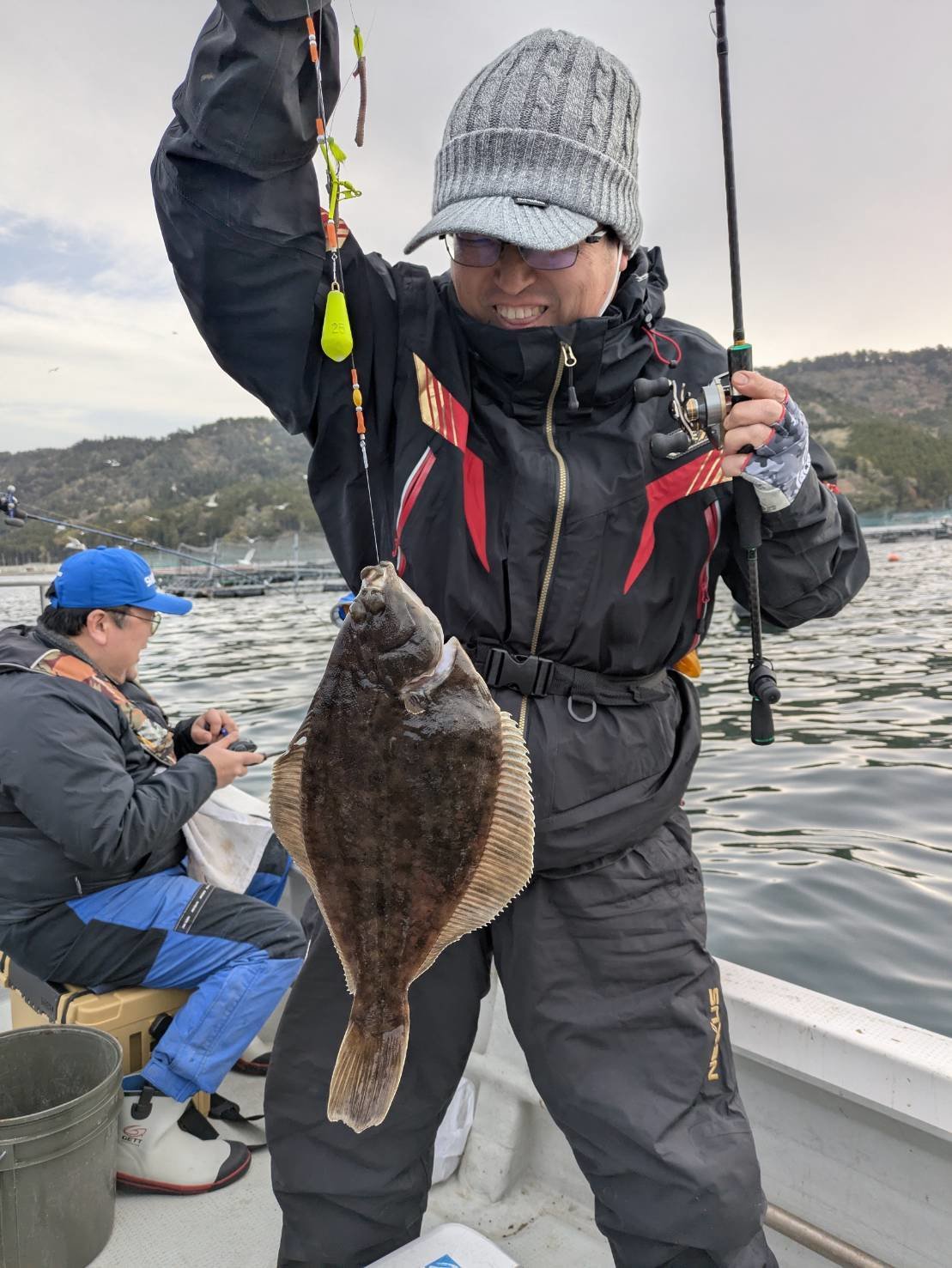 そうこうしている内に南西が吹き込み大荒れに…ゼロテンキープもままならない状況が続く中、城ヶ島沖で触る反応に出会い連続HIT!