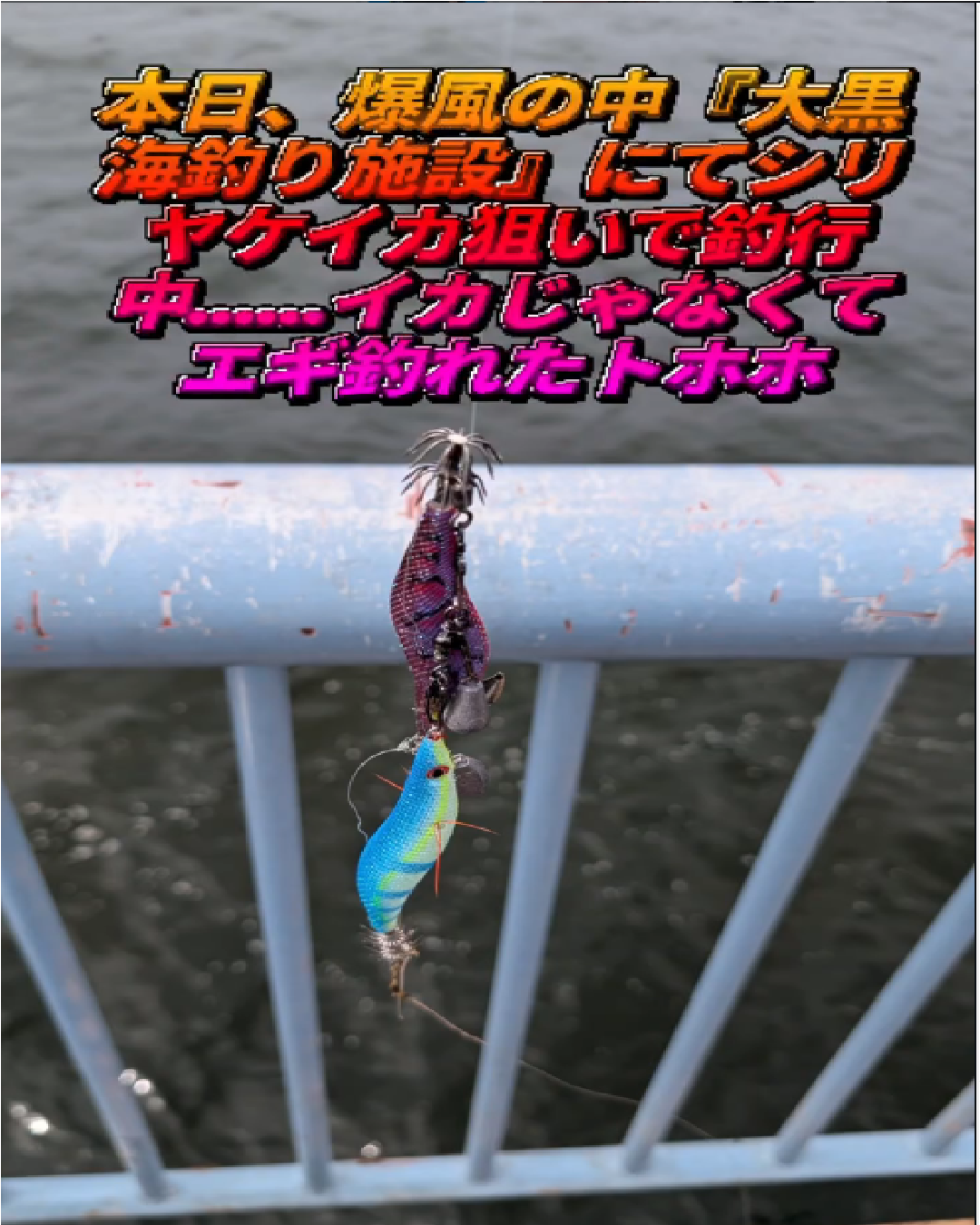 強風でしたが2.5号のエギにナスオモリをプラスして