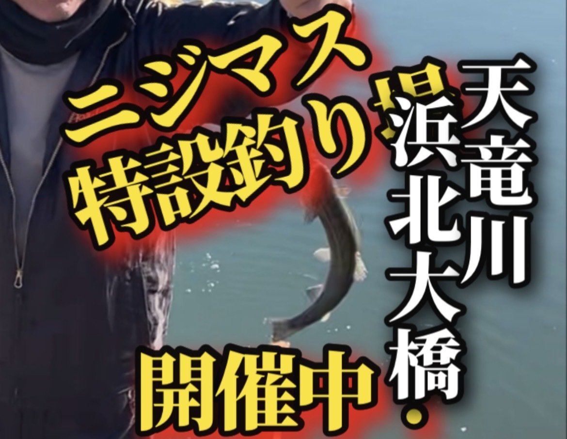 天竜川浜北大橋直下の右岸側(浜北側)にて、ニジマス釣り場開催!