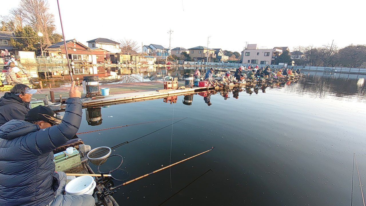 場所は久しぶりの訪問となりへら鮒仲間の【ゑびす会さん】面々が1月例会をやってると聞きつけたので【武蔵の池さん】に来ております!!!