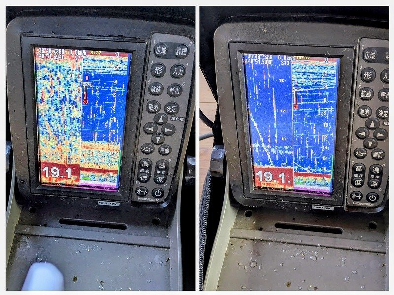 魚探が真赤に染まる様な群れが入った時は連掛け狙い。