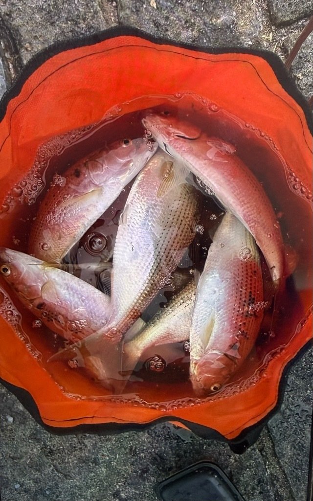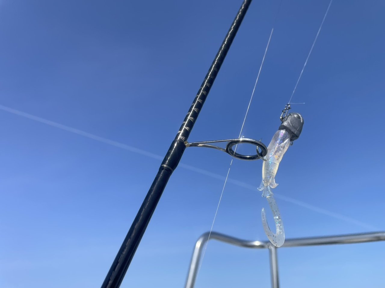 風向きと払い出しの方向が微妙に釣りずらかったですが沈み込みの早いプログレスグレL02で対応出来ました。自重があって低重心なので振り込みもかなり楽で、マキエにドンピシャで合わせやすかったです。
