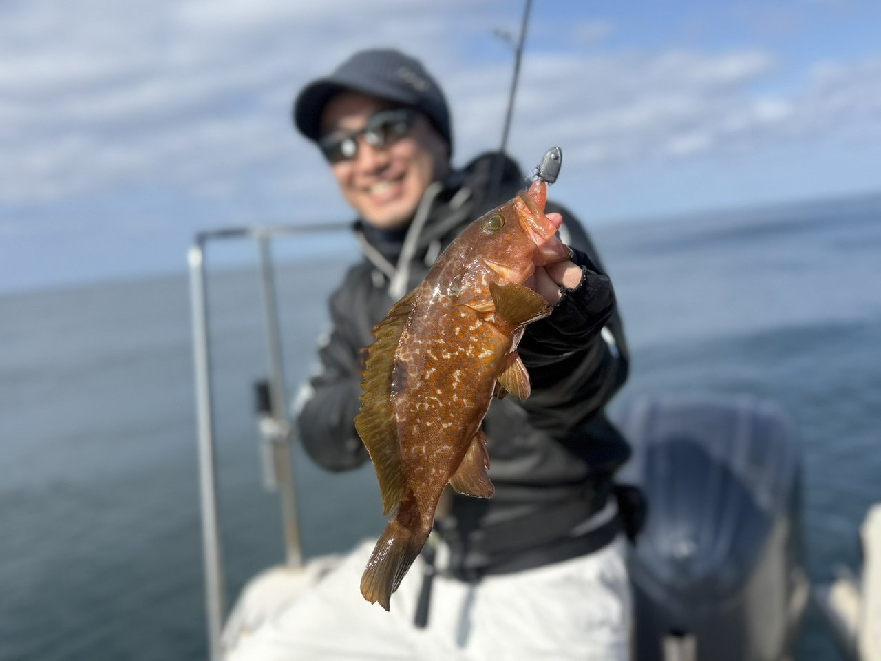 網代漁港ジャパンシーさんでボートサゴシへ行って来ました!事前情報ではサゴシの釣果に期待が出来ない為保険でロックフィッシュも準備して下さい。と船長より連絡もあり複数本のタックルを準備する事に。当日は凪も天候も良く落ち着いた海。まず朝イチはサゴシを狙う事に。信頼のX80マグナム+1で1本ひねり出す作戦です。が、周りの船も自分たちも釣果が無く早々に見切り保険発動!ちょっと走りますよ~と船長からアナウンスが入り移動♪根回りをランガンしてロックフィッシュを狙うもこちらも激渋・・・中々反応が得られずあれこれ試しているとお客様がテンヤで良型メバル・カサゴをヒット。自分はベイトタックルからスピニングへ持ち替えジグヘッドをキャストし広範囲を探ると・・・「ゴン!」ようやくヒットしたのはキジハタ!その後も同じパターンで探ると当たりますが中々載せられず、もう1匹キジハタを追加しタイムアップ。全員安打とはならずでしたがこれからサワラが釣れる事を期待したいと思います。