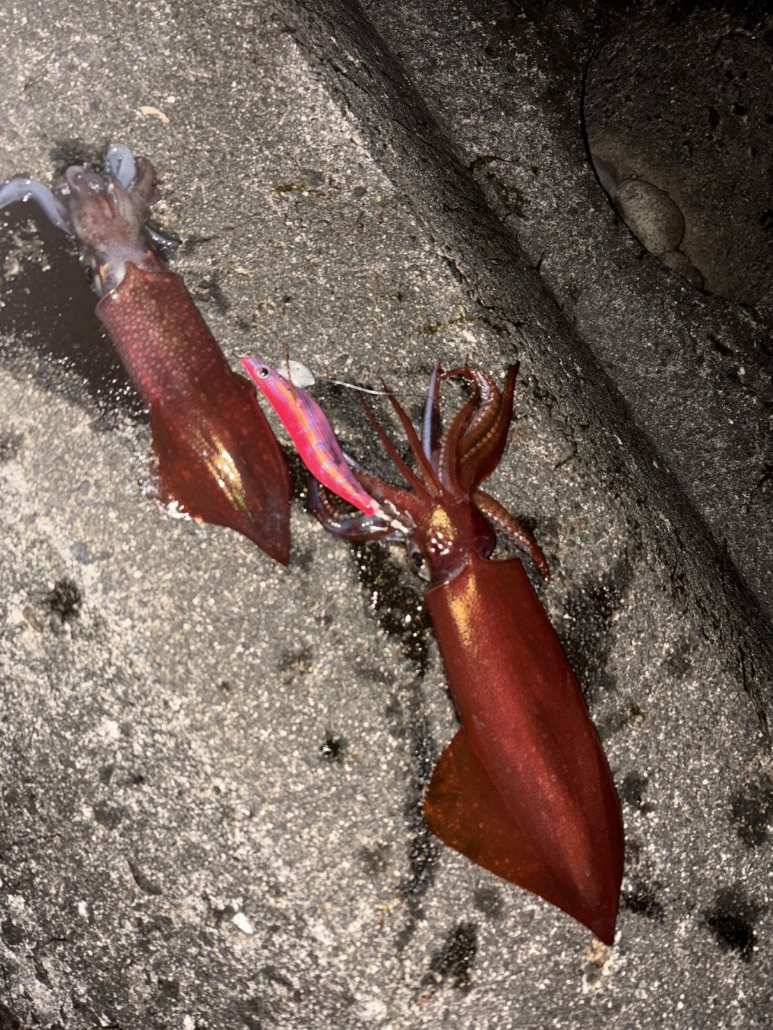 小松店常連様より釣果いただきました! 富山県は魚津にてヤリイカエギング、3号の下地が赤orピンクの餌木に反応が良かったそうで赤イカ混じりの釣果を楽しまれたそうです! 貴重な釣果情報ありがとうございました! 今年はヤリイカ釣りは調子いいですね、皆さんも楽しく美味しい釣りを満喫してください!