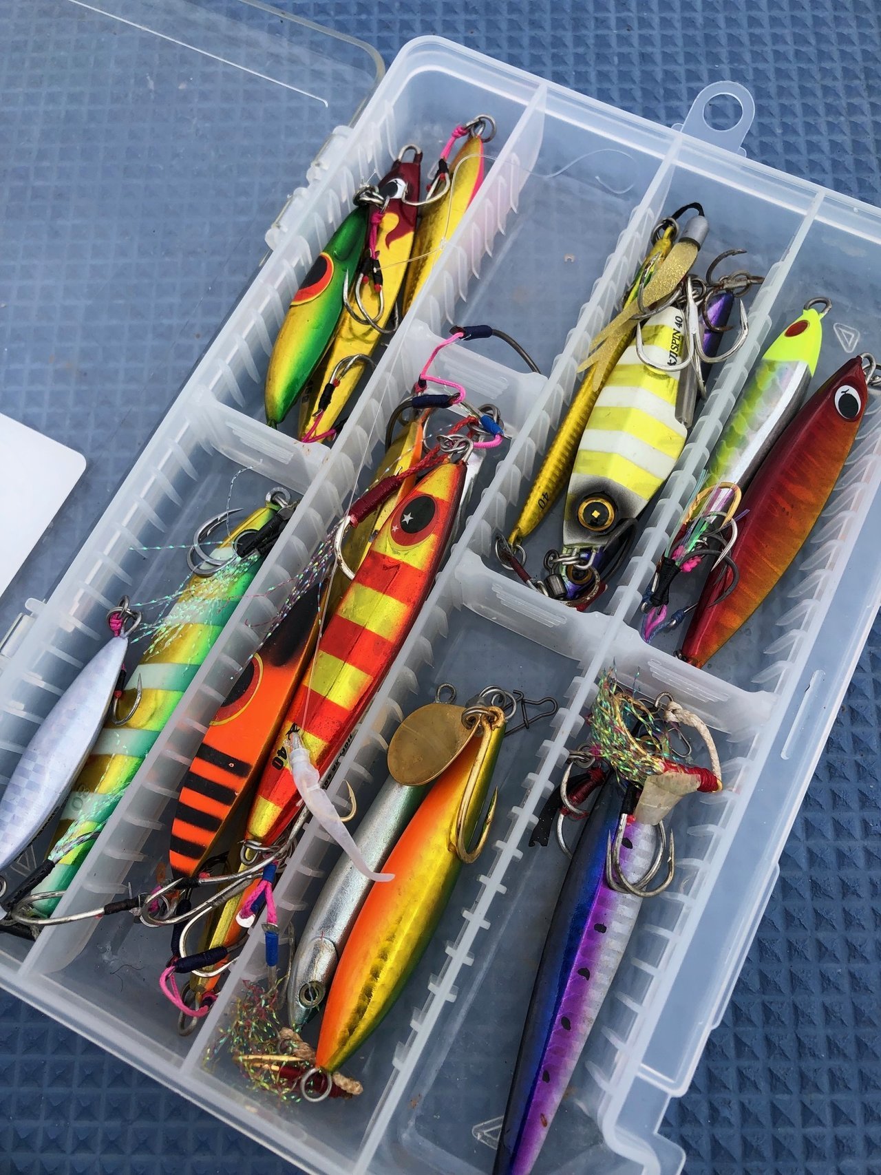 ■ロッド:シマノ グラップラーBB タイプLJ S66-0 ■リール:シマノ ストラディックSW4000XG ■ライン:PE1号 リーダーフロロカーボン4号 ■ルアー:40~60gメタルジグ(ブルージャック・フラッグトラップ他)