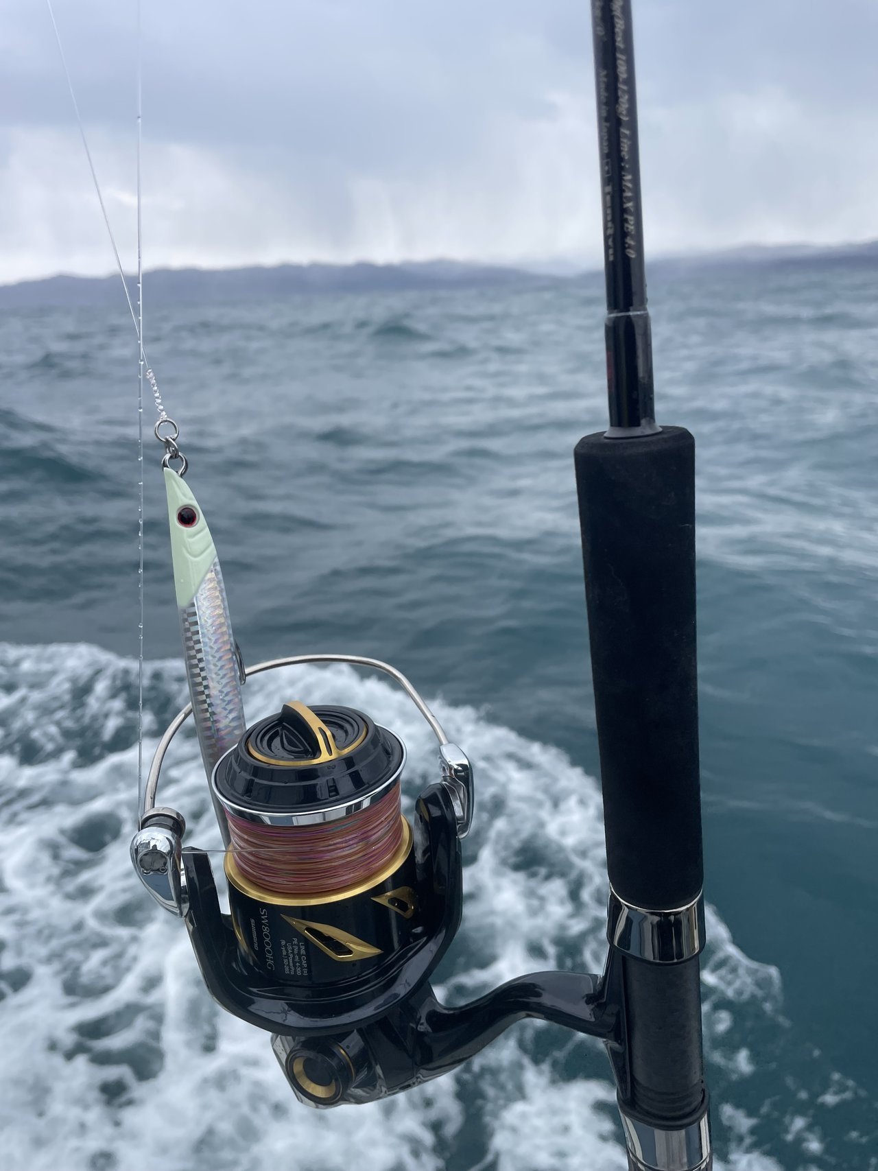 今シーズン2回目のブリジング釣行へ行って来ました。今回は上越名立漁港の「海遊丸」さんへ乗船。当初7時出船でしたが波風が強い為10出船へ遅らせてのスタートになりました。中々のウネリのなかポイントへ到着。まずはウネリを考慮してティップがソフトなドラッグフォース631-2/3番とスイムライダー180gで様子を見る事に。やはりウネリが伴って操作がし難いのでジグを鉛のキングスラッシャー180gへチェンジ。鉄より比重がある分安定感が出ます。2流し程して180gでは素直ばバーチカルになり過ぎているのでキングスラッシャー150gへチェンジすると理想のシャクリ具合に♪すると自分と反対側でビッグヒット!お祭りを防ぐ為回収しファイトを見守ります。無事上がったのは10kgオーバーの立派な寒ブリ!これで皆より気合が入ります。ブリの反応があるたびに船長が無線でアナウンスしてくれます。ややウネリが落ち着いたので沖へ走り深場を探りますがこちらも無反応・・・徐々に時間だけが過ぎてファーストヒットがあったエリアまで戻りシャクリ倒しますが無念のタイムアップ。年明けリベンジです!今回シマノさんより2025年新製品の25ステラSW8000HGとオシアジガーコンセプトSをお借りしていたので2番・3番を使い分けて見ましたが見た目以上に素直に曲がる為ストレスの無いジグ操作が出来ました。