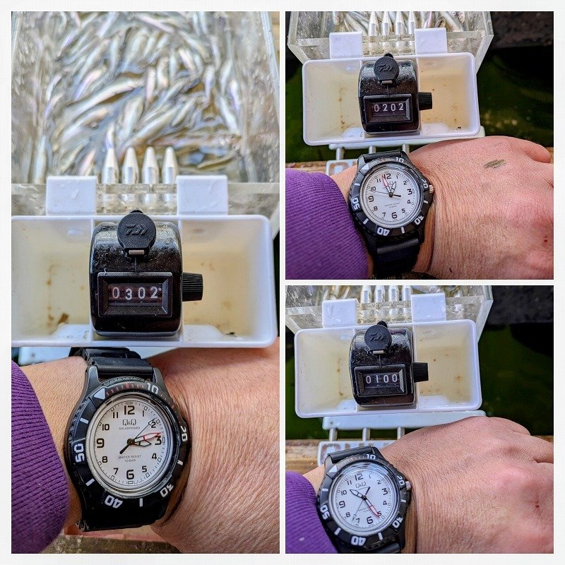 ■ルアー・仕掛け:オモリ)9g 仕掛け)袖1.5号7本針+下針 エサ)紅チーズサシ(寄せでブドウ虫)