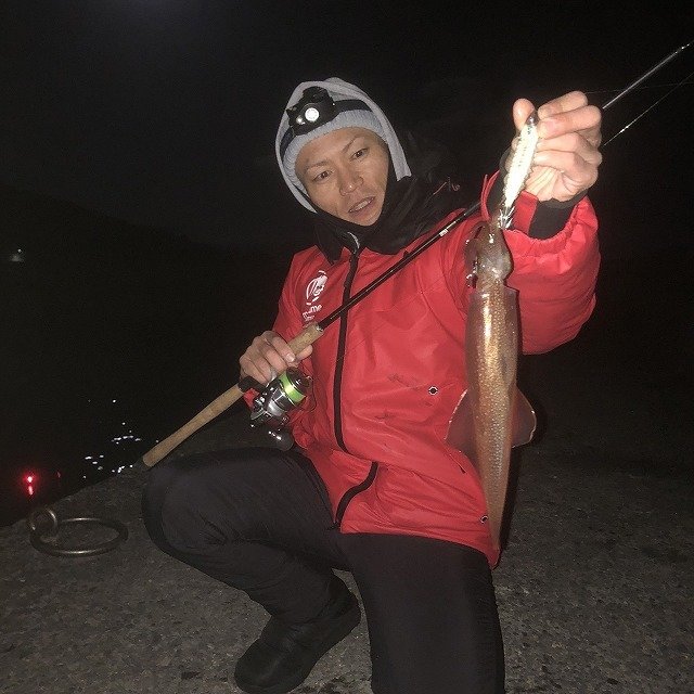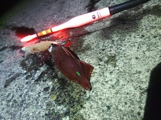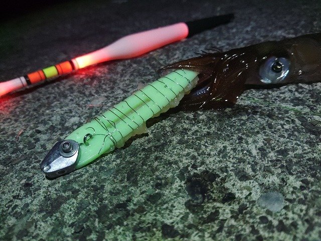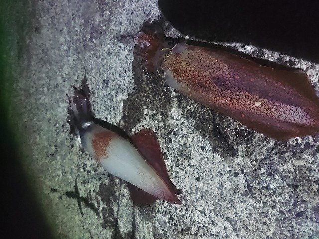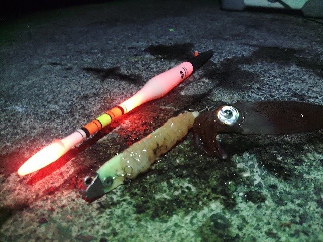 この日は、ポツポツと当たってくれて2時間ほどでヤリイカ、ケンサキ、ジンドウと