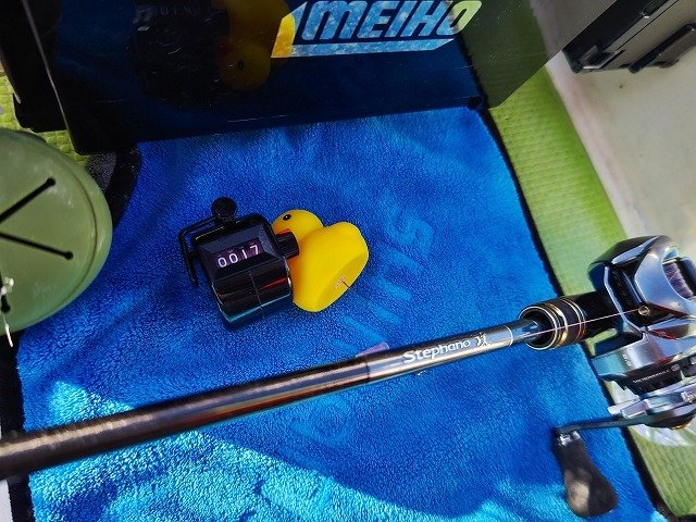 風が強く波が高かったので、前半はうまい事いかず苦労しましたが後半はおさまってサワリが出るようになり良い感じでした。しかし群れは居るのですがなかんか乗ってこないので数を伸ばせませんでした。水深が深いので電動を使って今したがだんだんわかってきました。