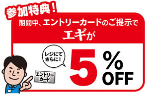 開催期間中、下記ダービー開催店舗にて参加証をご提示いただくと当店指定のエギーが当店通常価格より5%OFFとなります!