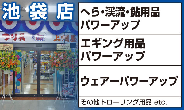 10月末の上州屋渋谷店閉店後、上州屋池袋店は渋谷店のへら用品、渓流用品、鮎用品、エギング用品、フィッシングウェアー用品etcを順次引き継ぎまして更にパワーアップする予定です!その他、トローリング用品etcも池袋店にて引き継ぎます。どうぞご期待下さい!