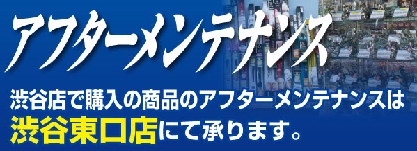 渋谷店閉店後、渋谷店で購入された商品のアフターメンテナンスは上州屋渋谷東口(宮益坂下)店にて承ります。