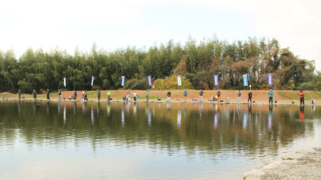 開会式後、抽選順でポイントに入り競技スタート!ポンドにはこの大会のため大型トラウトが多数放流されており期待が高まります!