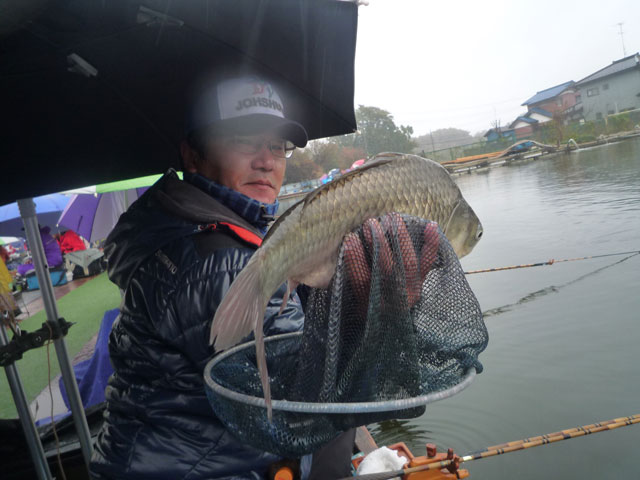 当日はあいにくの天気で朝から冷たい雨に降られてしまい、全体の傾向としてはへら鮒の反応も渋めでしたが、新へらを中心に良型が参加者の竿を絞ってくれました!