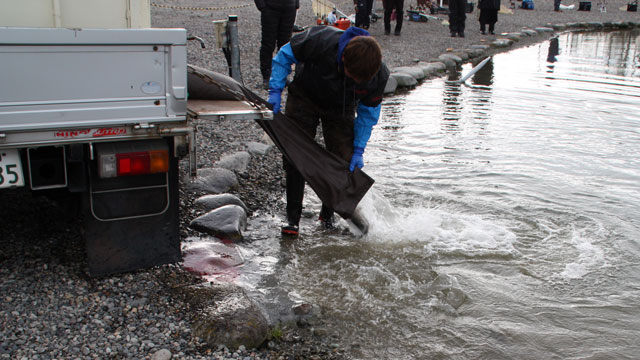 午前9時20分には中間放流のため一旦競技を中断、1号2号両池共に魚を放流して仕切り直しを行いました。