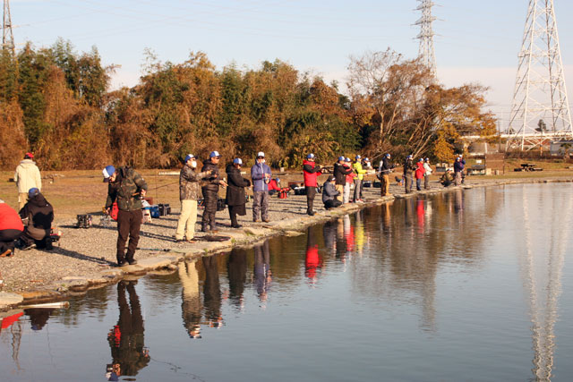 開会式後、抽選順でポイントに入り競技スタート!ポンドにはこの大会のため大型トラウトが多数放流されており期待が高まります!