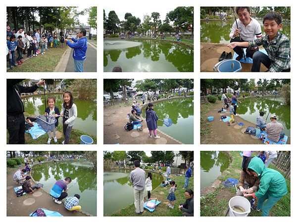 今回、数多くの魚が釣れた元淵江公園の池は一般の人に無料開放されています。今回の教室開催中も、地元の釣り人が釣り方を教えてくれたりと和気藹々の場とすることが出来ました。都内のこんな身近な場所に釣りを楽しみ、水辺と親しめる場所があるということで多くの方から、また釣りに来たいとの声を聞くことも出来ました。