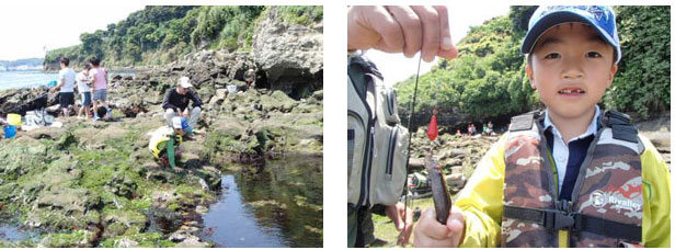 一方、こちらは島内の磯場周り。岩陰には様々な魚が潜んでいます。磯場というと難易度が高そうですが、いわゆる潮溜まりのような場所もあり、保護者の方のサポートがあればジュニアの皆さんも十分釣りを楽しむことが出来ます。